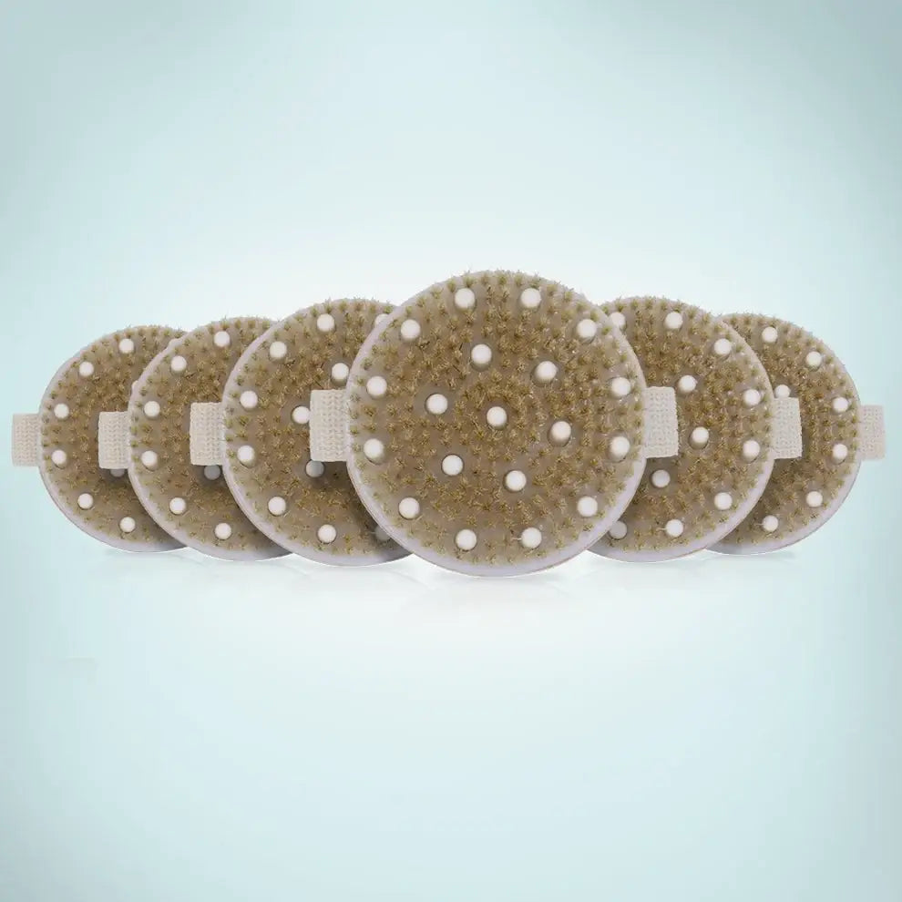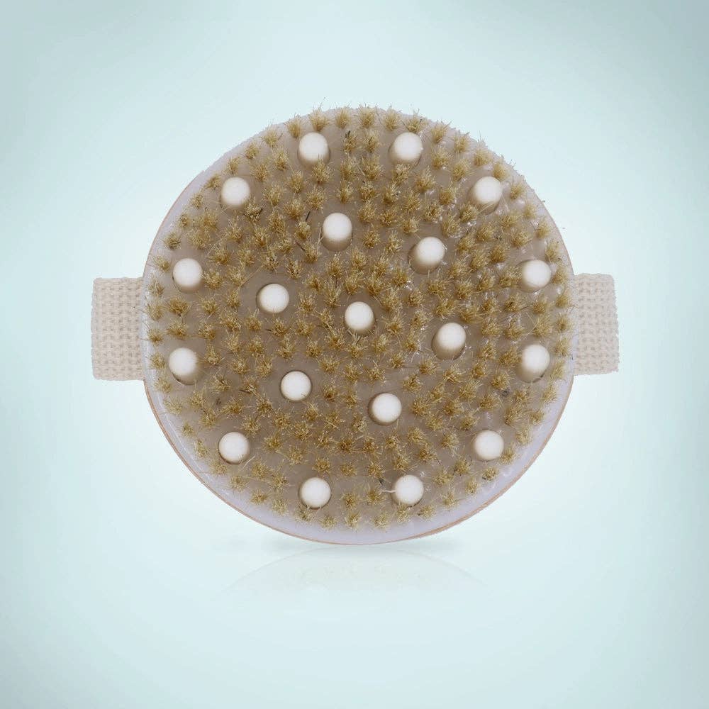 • Bamboo brush with bamboo bristles and white silicone pieces for extra friction