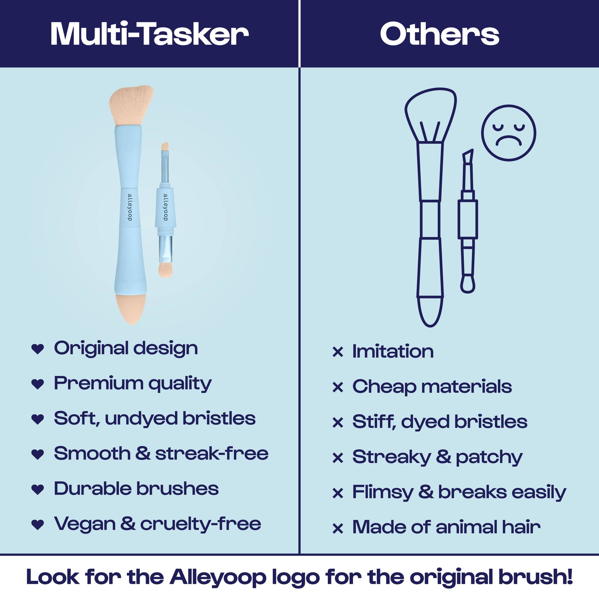 Multi-Tasker is four essential makeup brushes in one easy-to-use, easy-to-grab tool. There’s a sponge for concealer, and blush, brow, and eyeshadow brushes all made of premium synthetic fibers. Grab this and go, or use on a daily basis, it’s all you need for a flawless face. Our brushes are made of high-quality, synthetic fibers (vegan + cruelty-free). 20 x 6.5 x 3 cm.