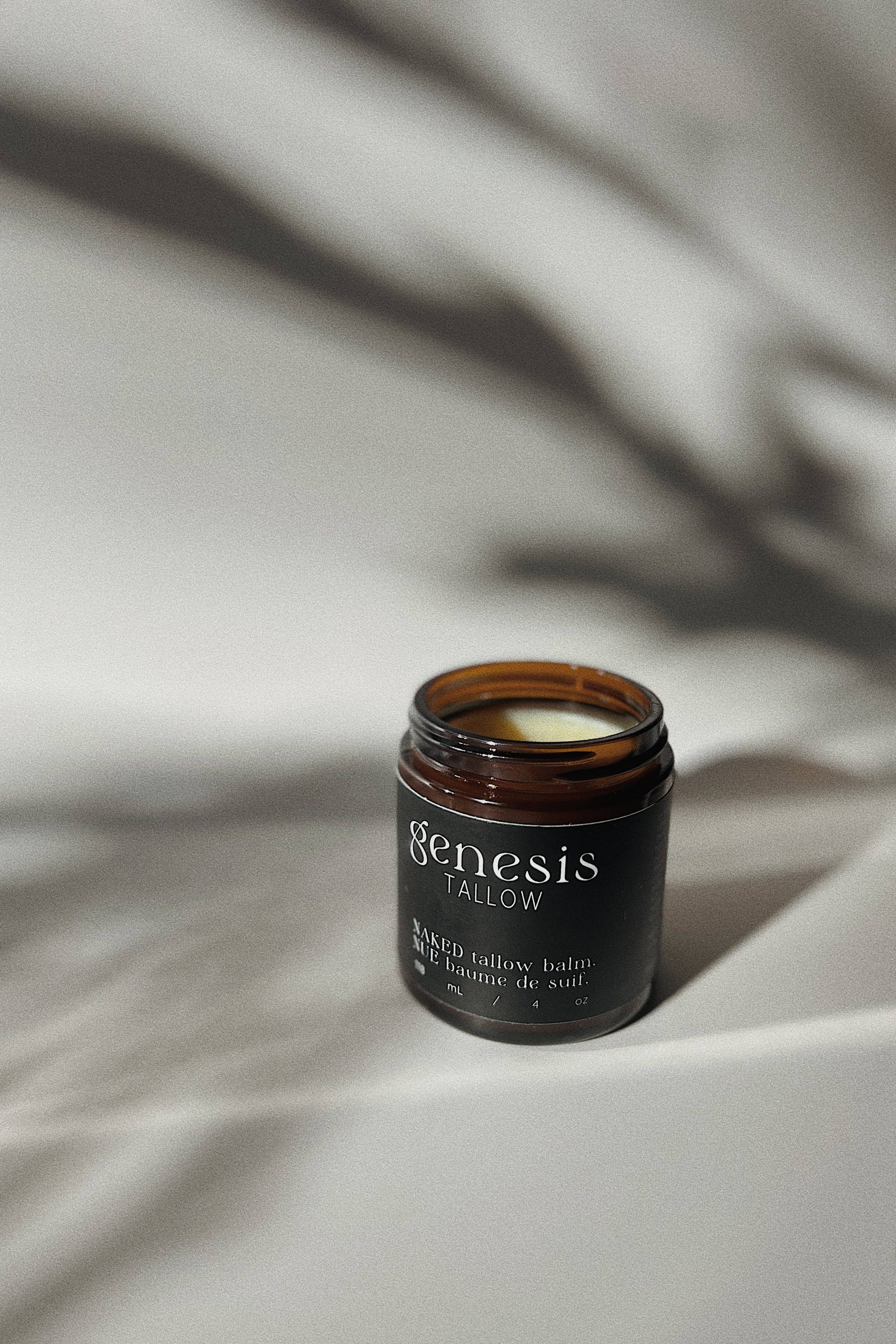 Naked Tallow Balm is our most untouched balm. Unlike our creamy whips this solid balm should be warmed in your hands before applying. Genesis Naked Tallow is made with only the best quality grass fed/finished beef tallow, and settled into a solid balm that lasts longer than whipped balm, and feels different going on, but has ALL the same great healing benefits. For people prone to extreme skin conditions the solid balm might be your you preferred method of application.