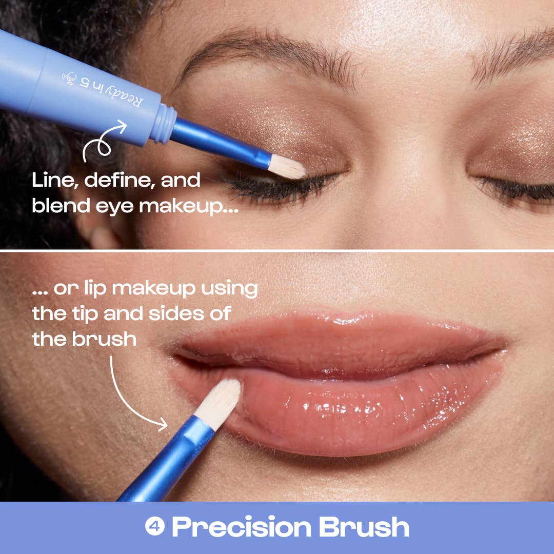 This 4-in-1 makeup brush packs all your must-have full-face brushes in one: All-Over Powder Brush, Multi-Use Small Blending Brush, Precision Brush (Eyes, Lips, Highlighter), and Complexion Brush (Foundation, Blush, Bronzer).
