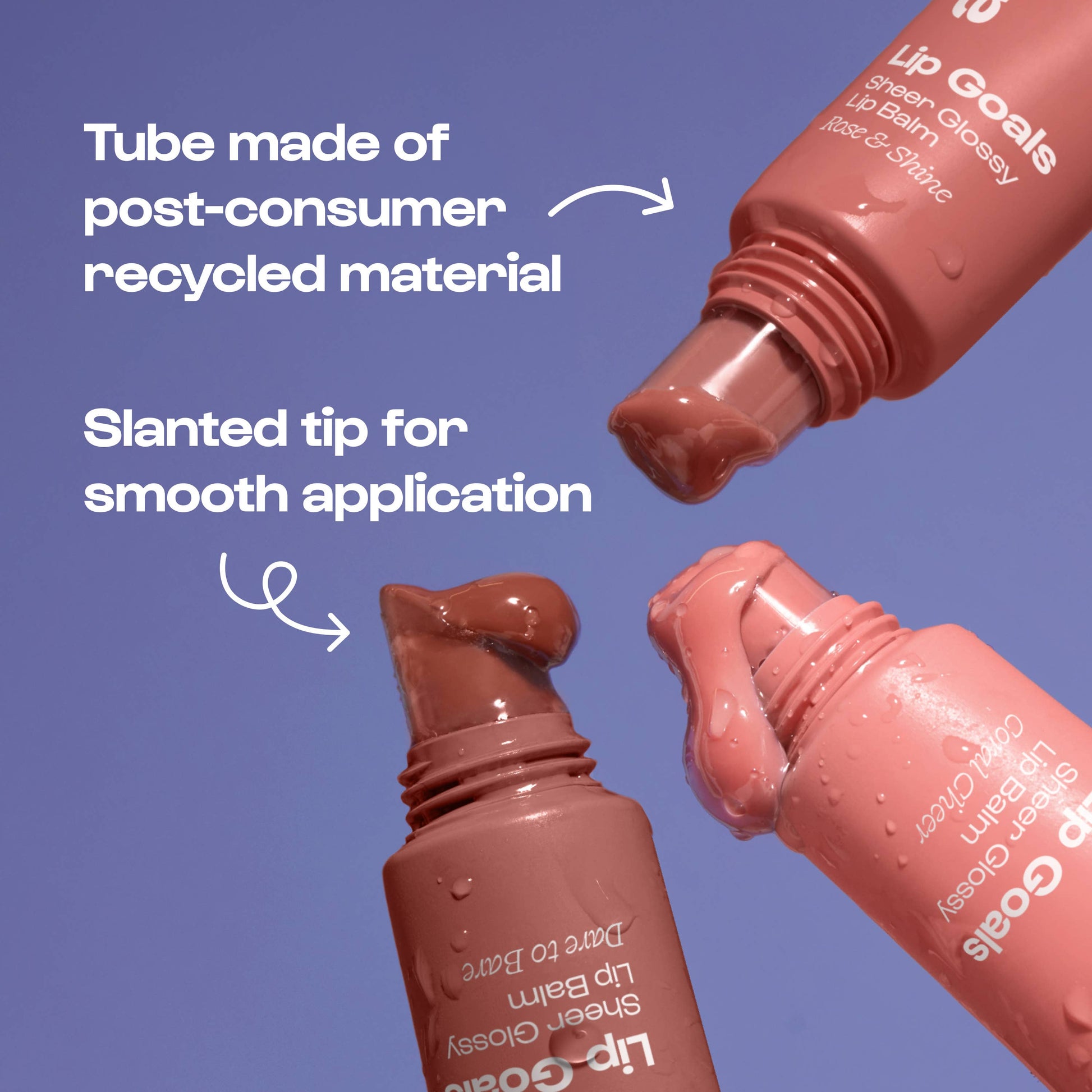 Score 3 full-size Lip Goals Super Hydrating High-Shine Glossy Balms in one set. These all-in-one lip heroes serve rich moisture, glassy shine, and sheer, juicy color. Packed with smoothing, softening, plumping ingredients for a winning pout.